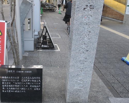 私には心を爽快にし,日々の活力を生み出す手段を持ち合わせている.それは何か?小旅行である.ここでいう旅とは温泉や観光地などに行って帰ってくるものとは限らない.土地やそこに暮らす人々が醸しだす歴史,風土や文化を感じるアンテナを張っていれば,どこに出向いても誠に興味深く愉快である.そう思うと三条通を東に歩んで軒下に隠れた道標前に立ち止まるのも,道頓堀界隈や奈良町の一角を通り過ぎるのも気分がいい.